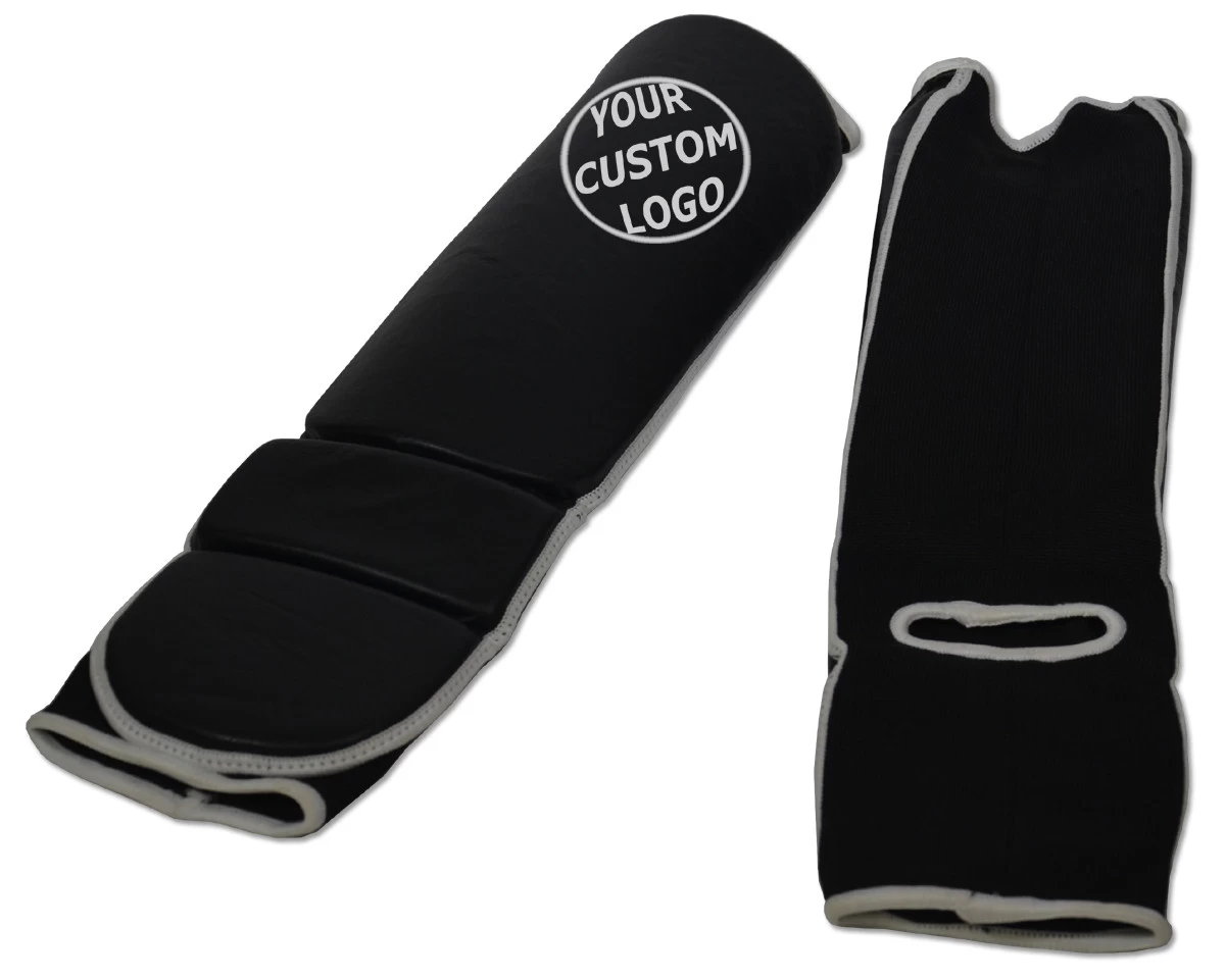 Leather shell. Improved design with surgical elastic material backing for easy slip-on , better design than the standard grappling shin instep design with neoprene backing, This new design has Leather striking areas and stretchable surgical knited support backing secures the guard to the feet and shins. Stretchable Surgical knited support also covers calf area. Easy to wear.