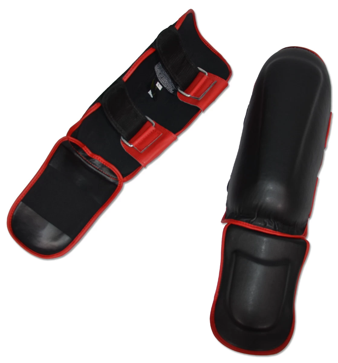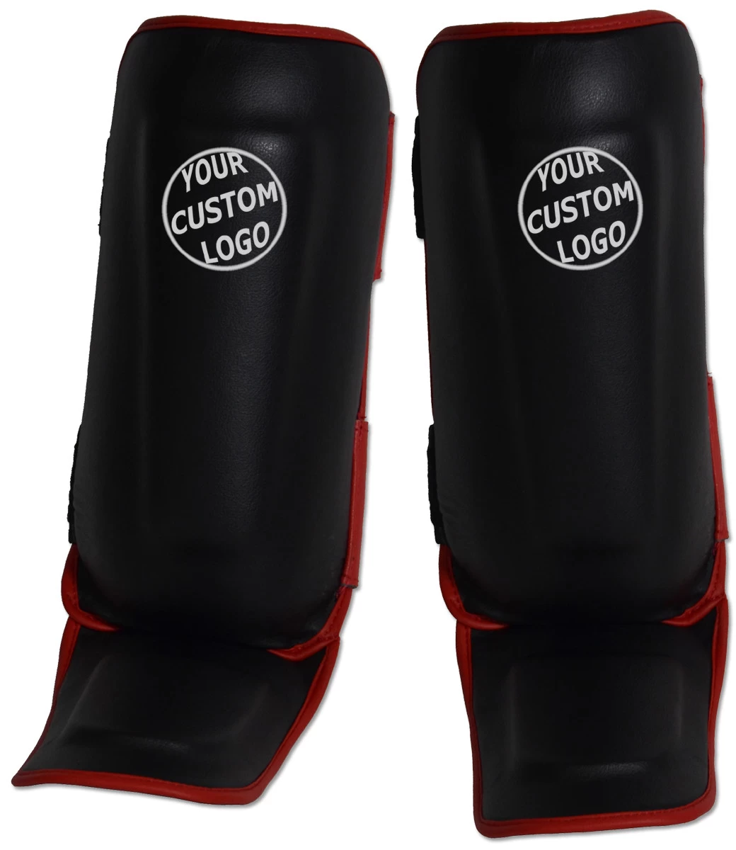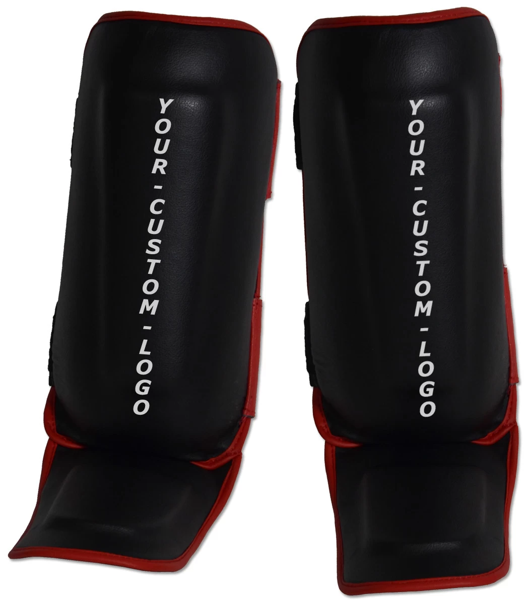 Molded Muay Thai-style shin and instep protection.