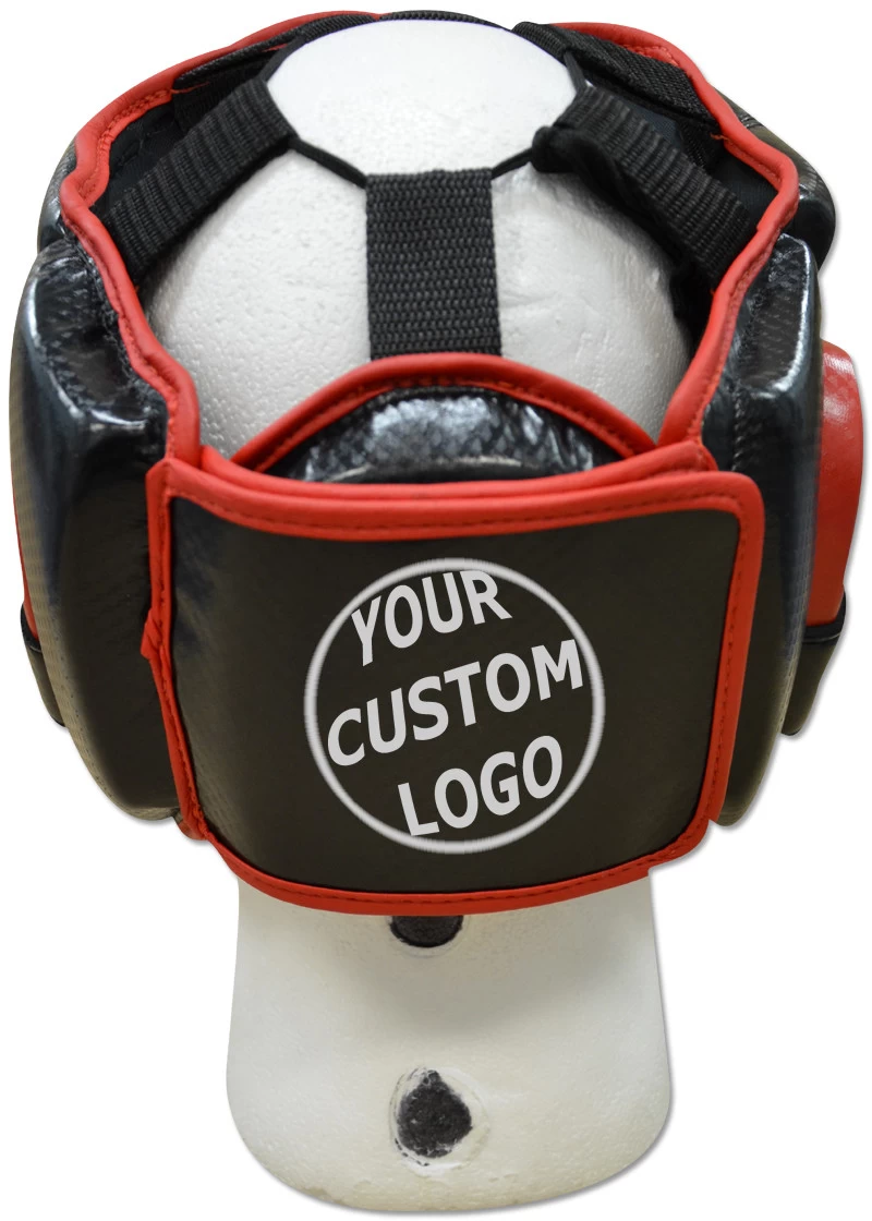 All made of durable synthetic leather, lace up top. Large, padded earpieces. Additional face protection with cheek and even more chin padding for front and underside for the jaw. Velcro strap back closure with padded cushion.