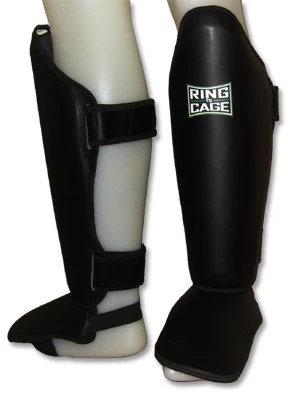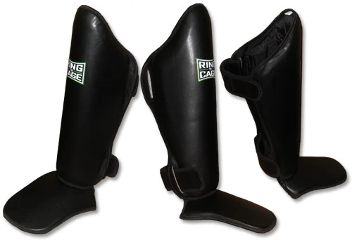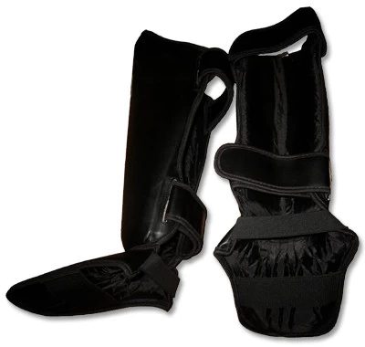Molded Muay Thai-style shin and instep protection.