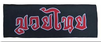 Muay Thai Patch in THAI LETTERING, embrioderd textile patch to put on a your short, pant, jacket or anything you can can think of. size 12 x 4”