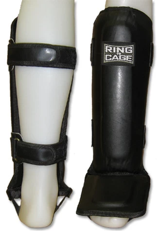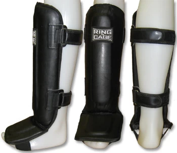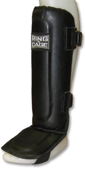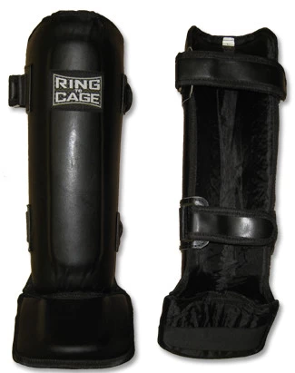 Molded Muay Thai-style shin and instep protection.