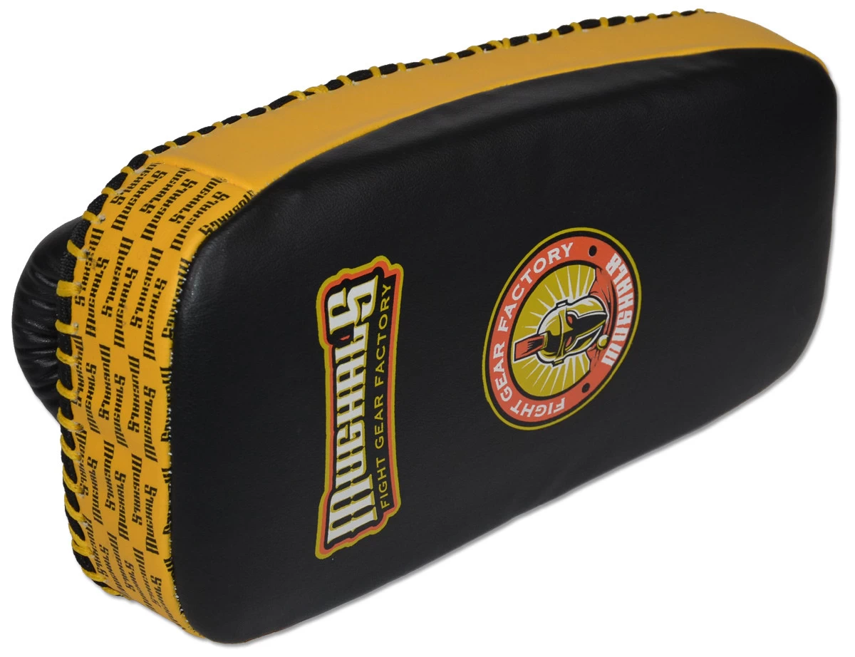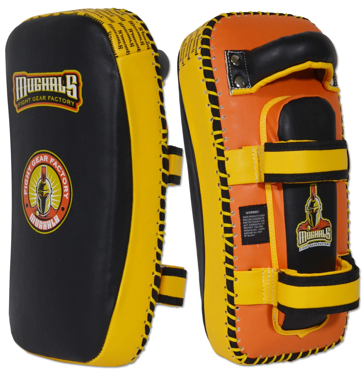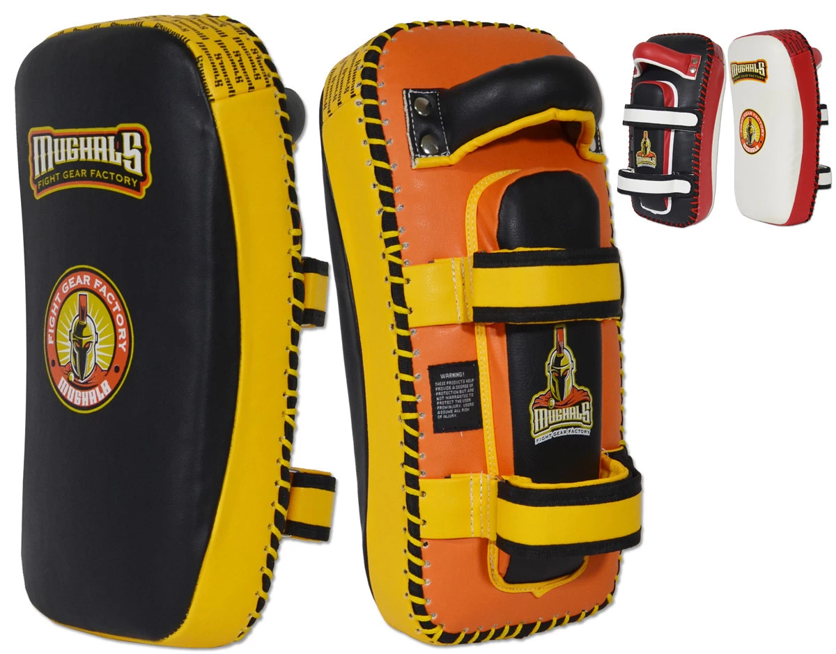 Elite Thai Pads are improved version with premium heavy duty synthetic leather and extended cushion for the forearms support. No seem (stitch) on the edges for kicks and knees to land comfortably.