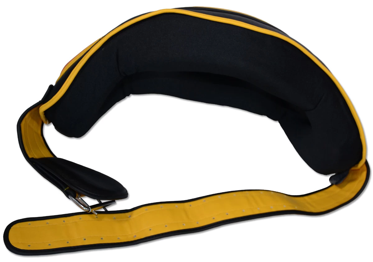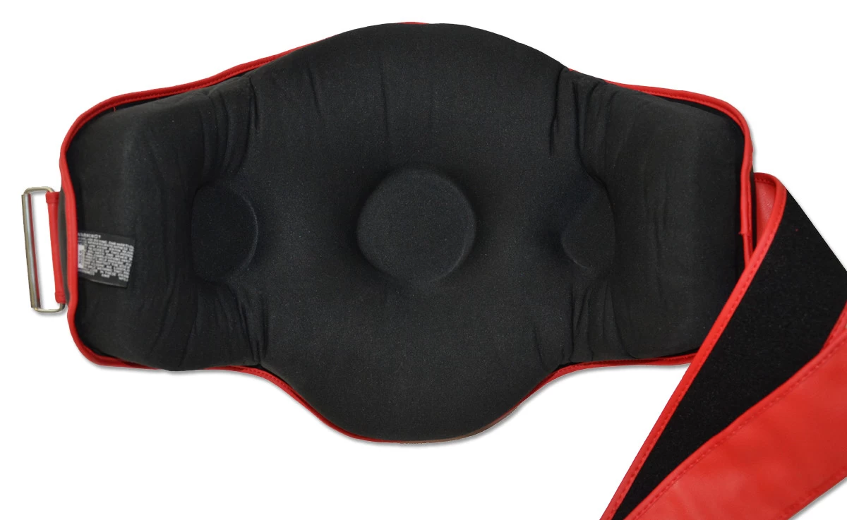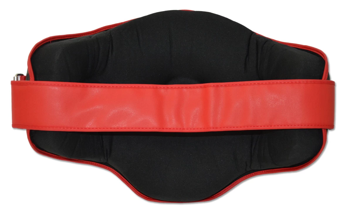 Mutiple layers of shock absorbing foam padding with Dome Air technology placed on 3 stress points. No Hook n Loop strap closure on the back, this belly pad comes with heavy duty metal buckle and triple layer strap for extra secure fit.