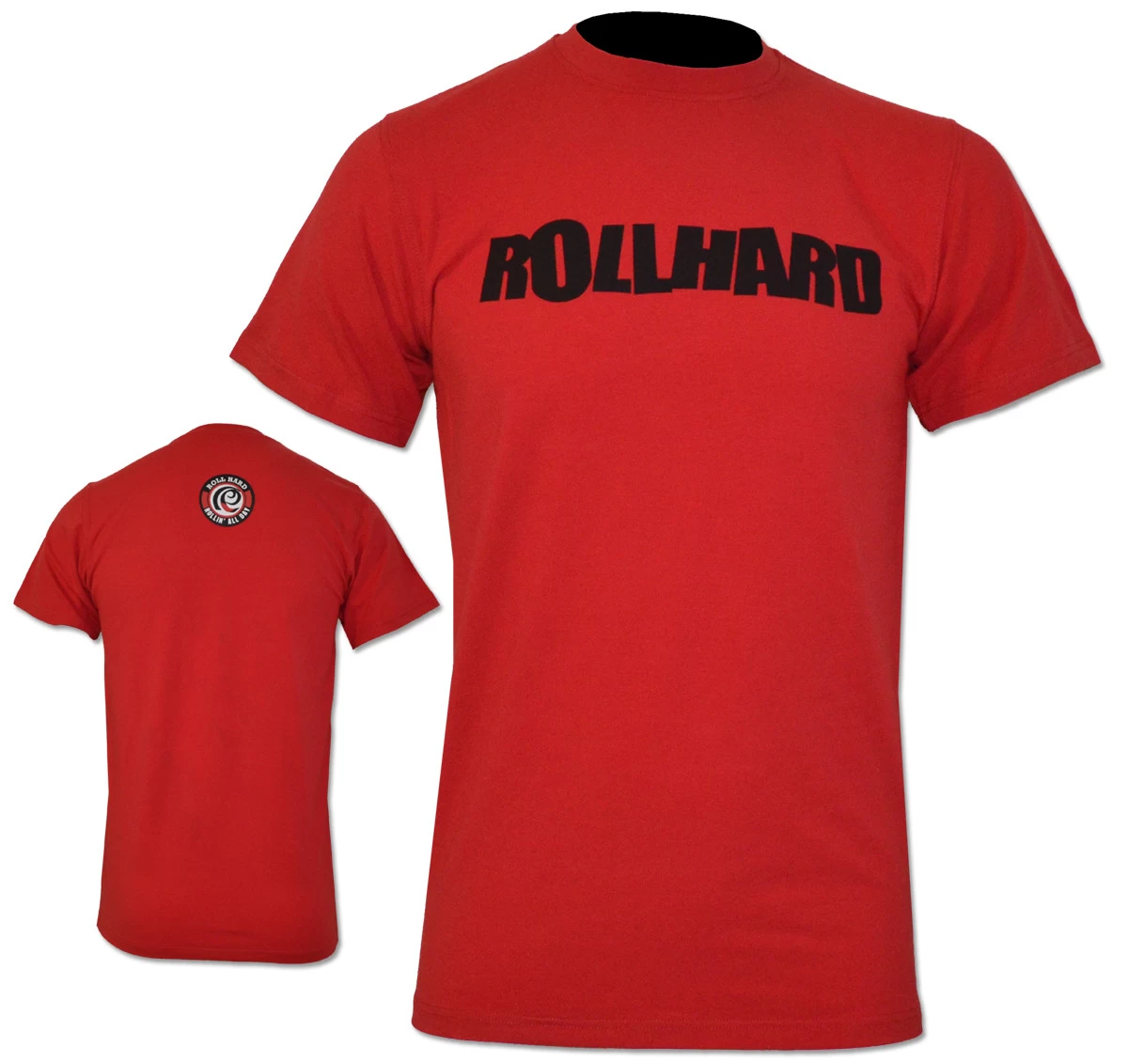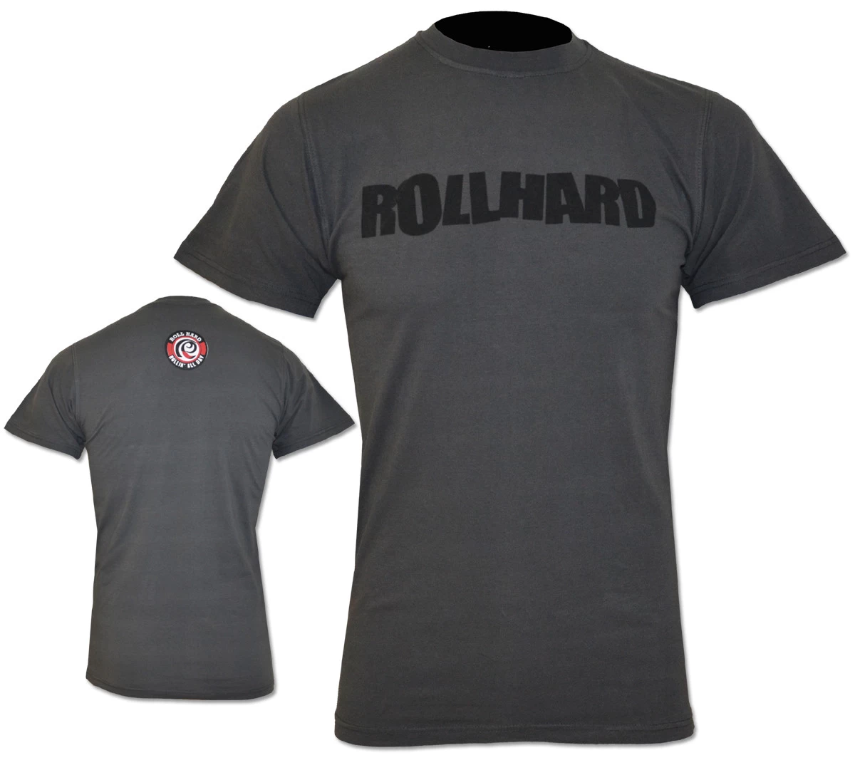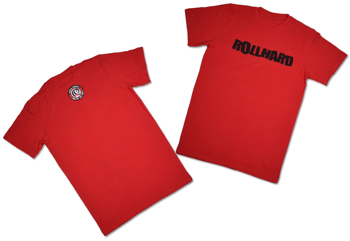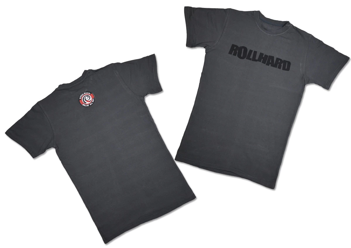 RollHard Brand Tee, wordmark printed on front center. Icon logo printed on the upper back neck.