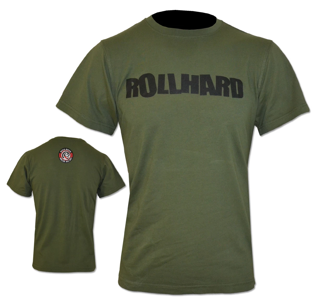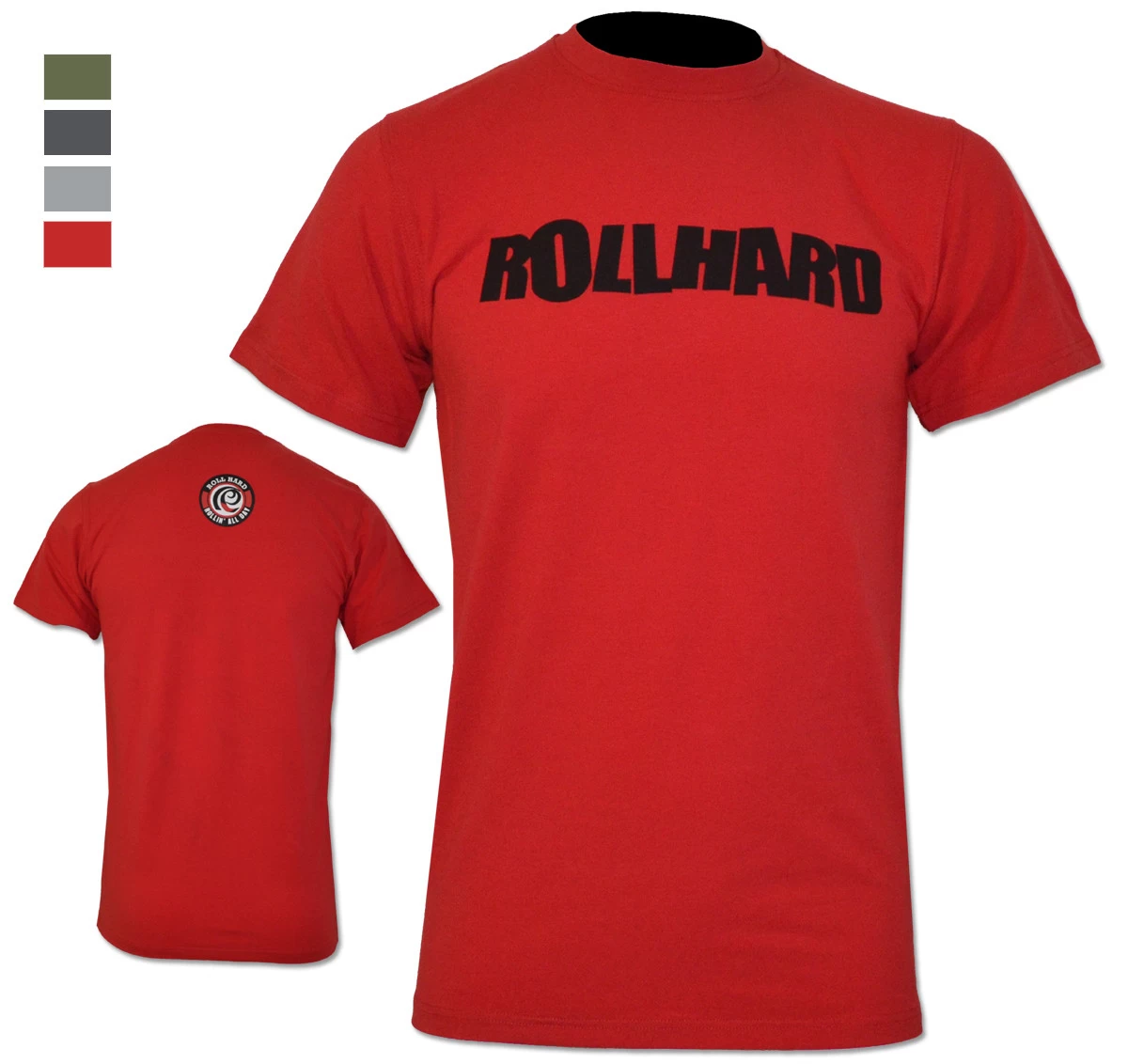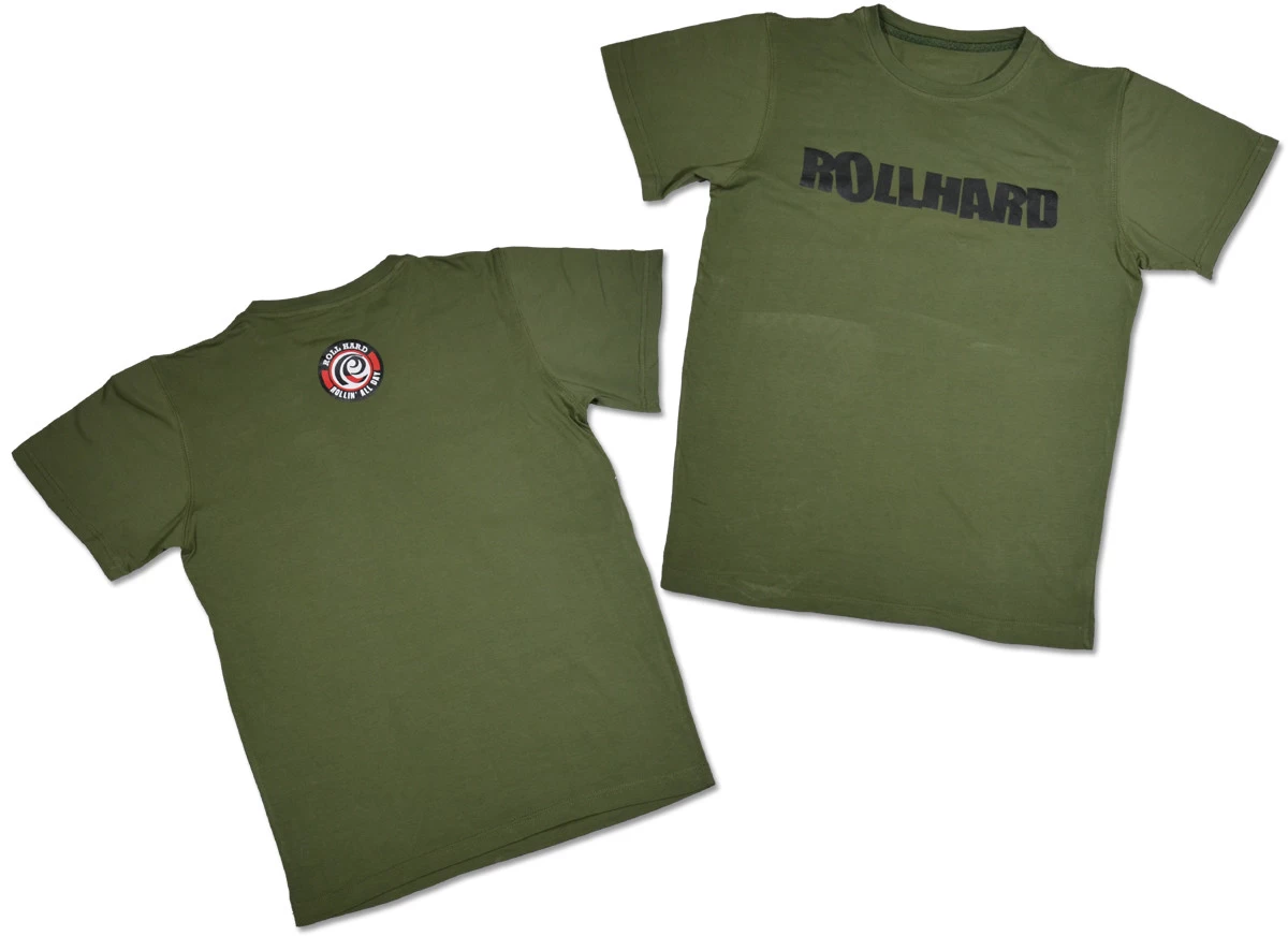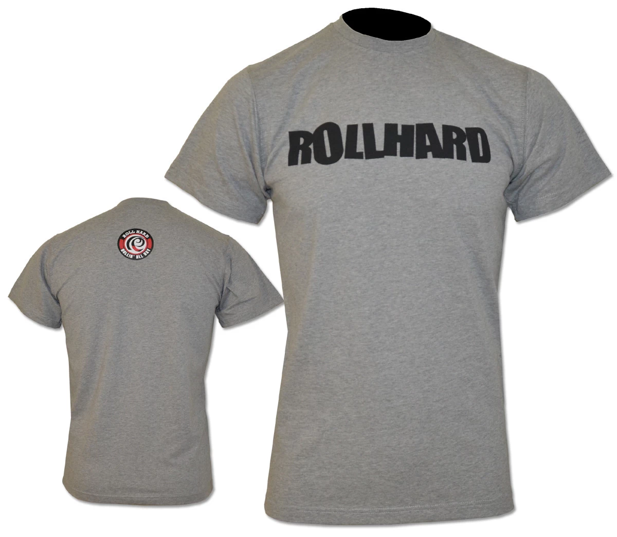 RollHard Brand Tee, wordmark printed on front center. Icon logo printed on the upper back neck.