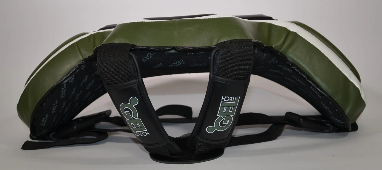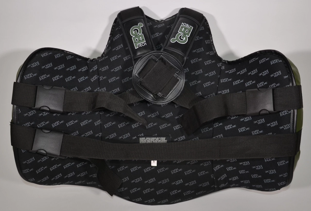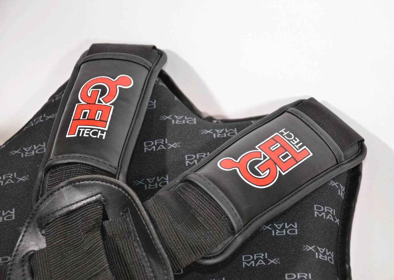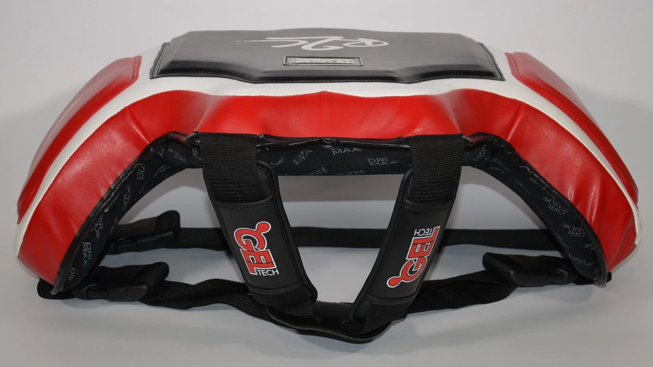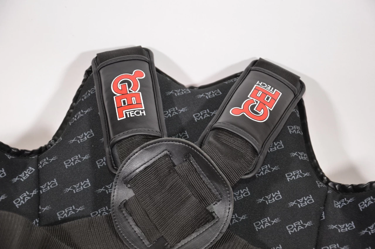 Protection for all trainers. Full protection for the upper body. GelTech padding to stop the impact of shock. Made of durable synthetic leather shell; lightweight design Secured by two adjustable shoulder straps with buckle closures; one rear strap with velcro closure. 2 Additional GelTech pads are attached to over the shoulder straps for more comfort while wearing. DriMax moisture wicking liner. One size fits most. Weighs: 5.65 lbs